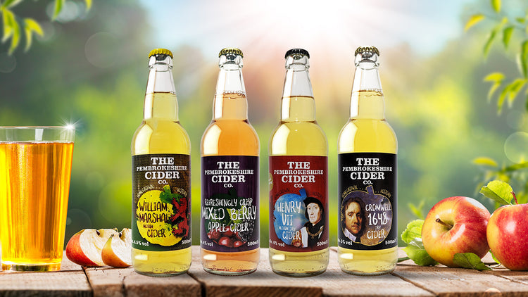 Refreshing, crisp and juicy, with a perfect balance of sharpness and sweetness, our range of ciders are made from a blend of several varieties of apples including some from a secret medieval garden, hidden just a stones throw from Pembroke Castle.
